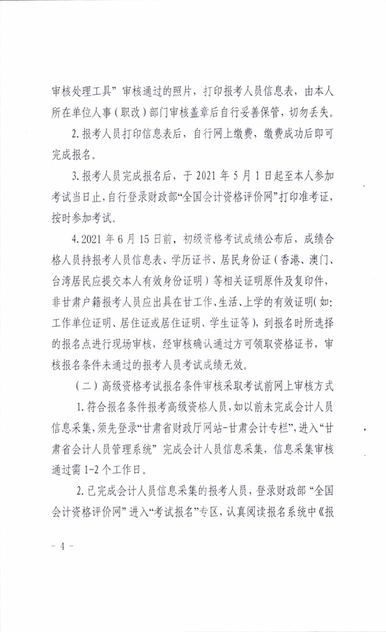 根据甘肃省财政厅、甘肃省人力资源和社会保障厅工作的安排,2021年度会计专业技术初级高级资格考试将于2021年5月举行,现将《甘肃省财政厅 甘肃省人力资源和社会保障厅关于2021年度全国会计专业技术初级高级资格考试(甘肃考区)考务日程安排及有关事项的通知》(甘财会[2020]36号)转发于各处(室)、系(部),请各处(室)、系(部)务必转达给全体教师,请有意向的老师积极报考。