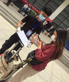当天早上,学生返校各项工作全部准备就绪,工作人员与志愿者各就各位,现场井然有序,炎炎烈日下,校门口格外忙碌,工作人员引导同学们保持距离,有序排队,并对学生行李集中消毒。同学们依次出示学生证身份证和提交健康码。