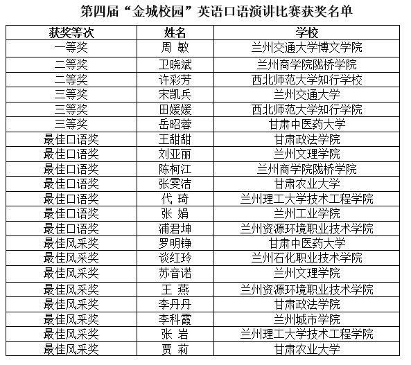 附:第四届“金城校园”英语口语演讲比赛获奖名单