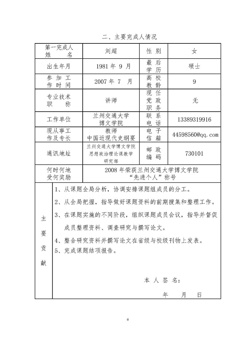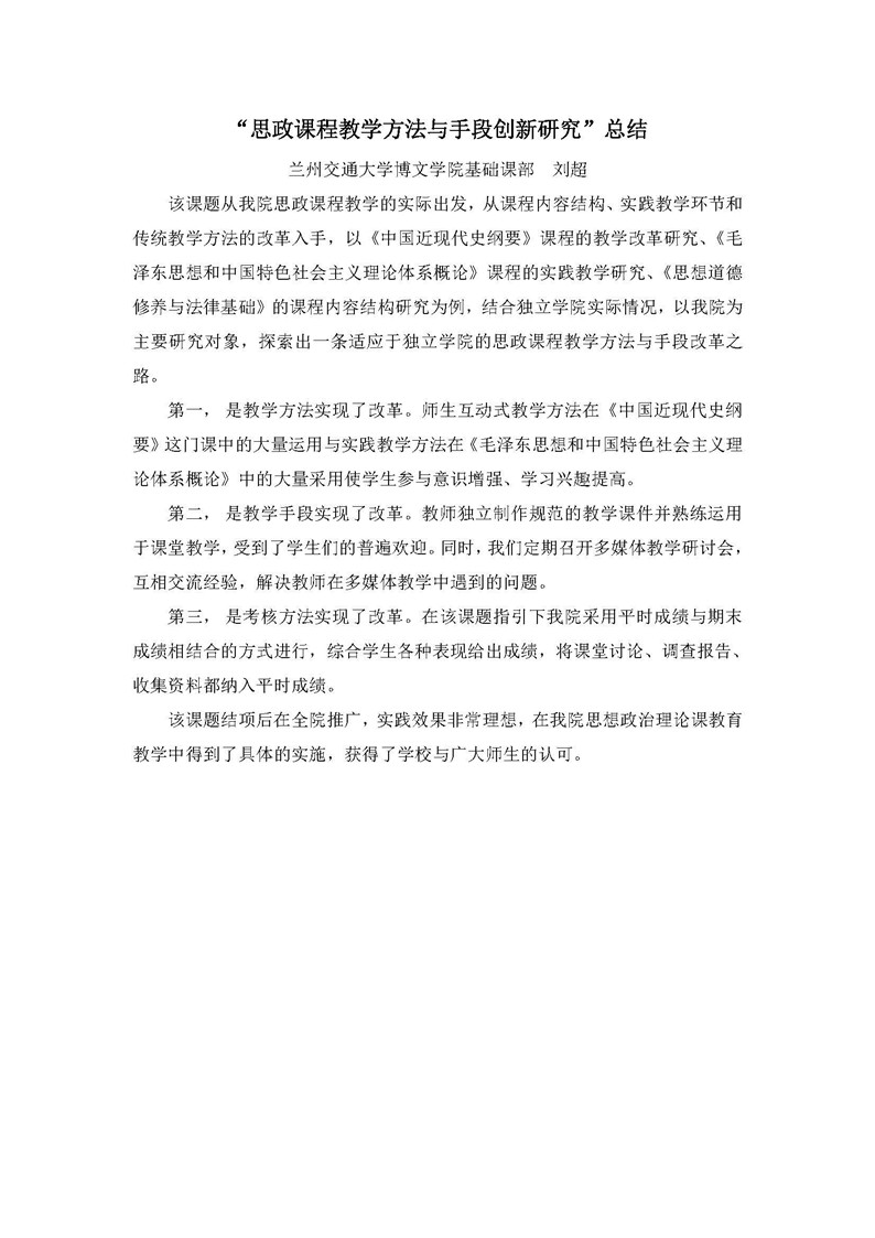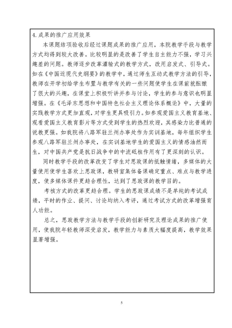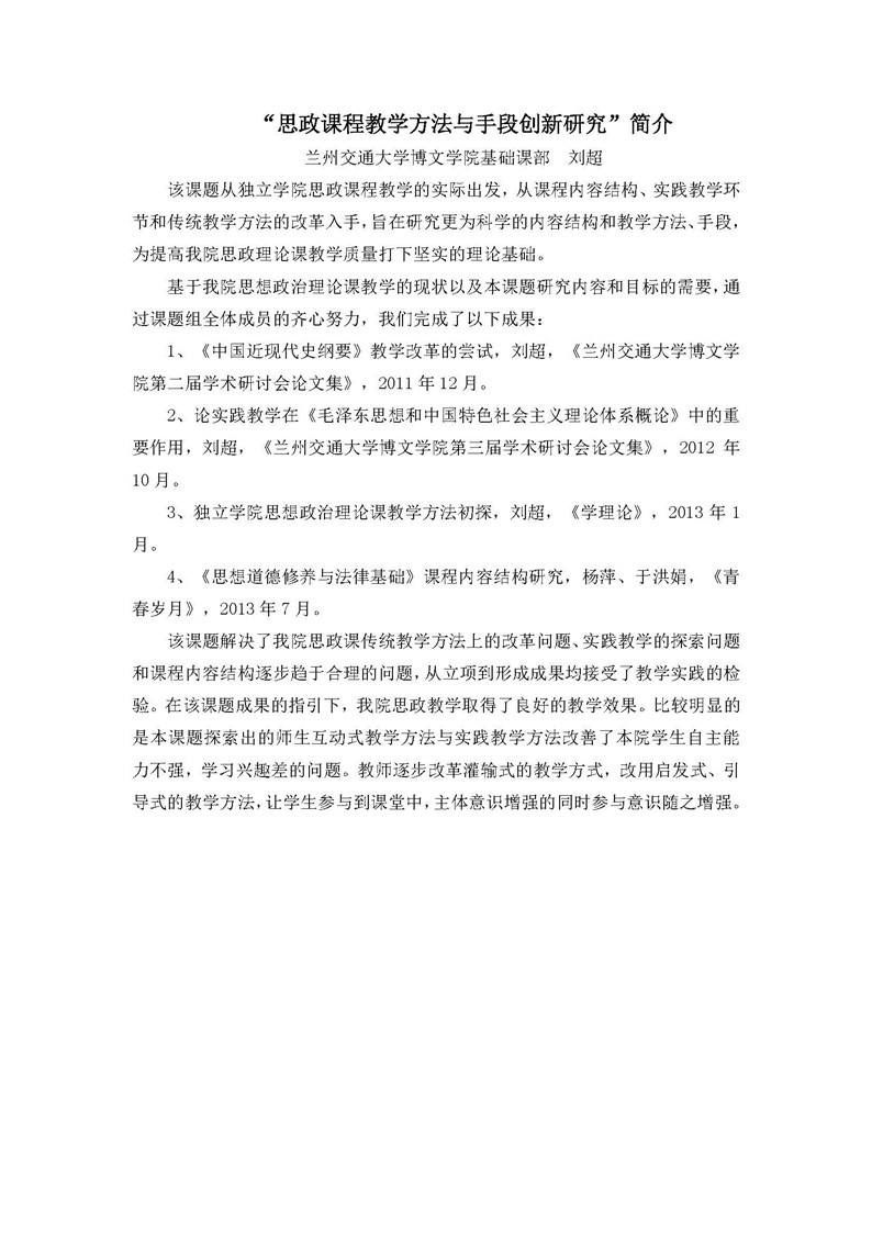 《思政课程教学方法与手段创新研究》成果推荐材料(2016年6月申报)