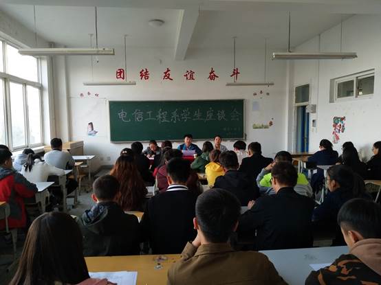 2017年11月8日中午,电信工程系在教学楼1010教室组织召开了教学工作学生代表座谈会,电信工程系郭斌主任、郭丽君副主任、刘红艳老师及各班班长、学习委员和学生代表参加了此次会议。  ...
