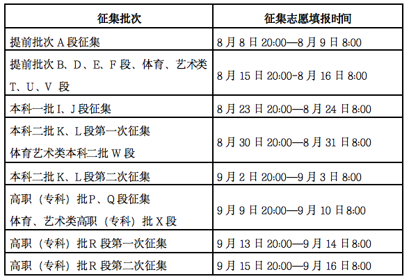 1、征集志愿的批次 除本科提前批次(C段、G段)、本科一批(H段)、高职(专科)批(S段)三个批次中的4个段不实行征集志愿外,其他批次其他段均实施征集志愿。 2、征集志愿的时间 3、每批次征集志愿一经开始,原批次所填志愿作废,每批次二次征集开始后第一次征集填报的志愿作废,录取程序将按最新征集的志愿投档。 4、凡进行两次征集志愿的批次,如第一次征集志愿结束后,已完成本批次招生计划则不再进行第二次征集志愿。 (本指南中所有图均为参考图,填报时按照实际界面为准)