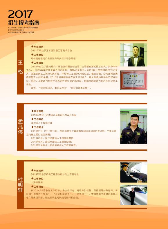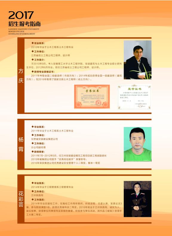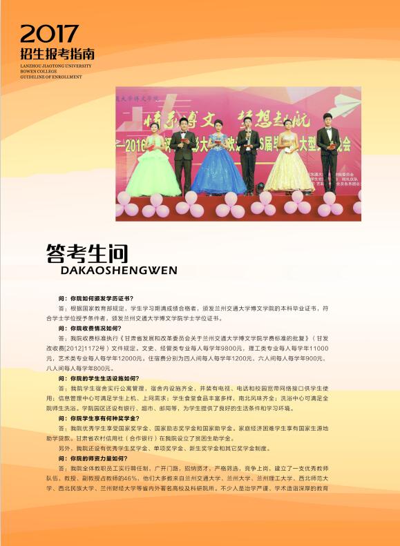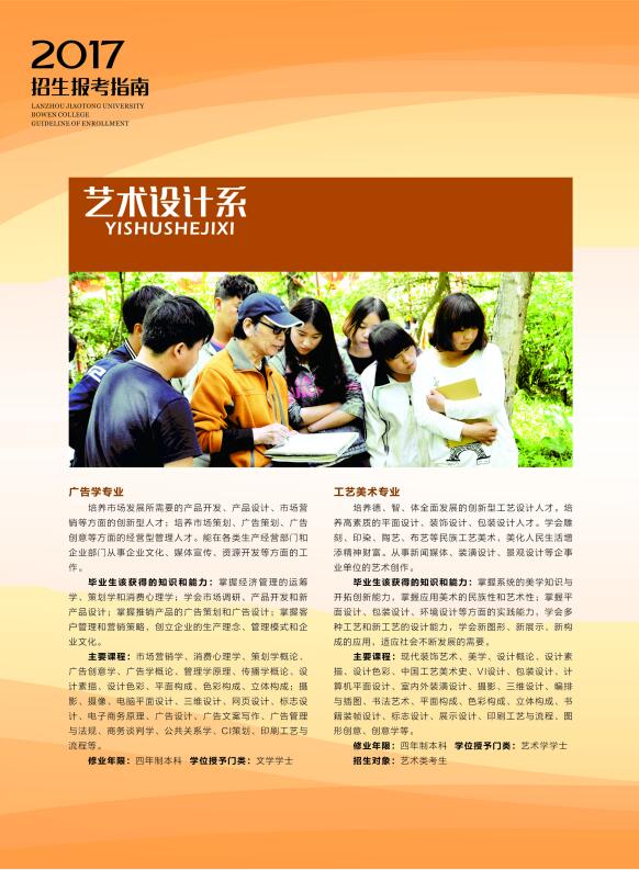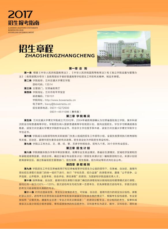 2017年我院面向全国23个省(市、区)招收本科生共2680名,面向甘肃招收本科生2380名。其中艺术类专业计划30名、三职生计划50名、南疆单例计划1名。