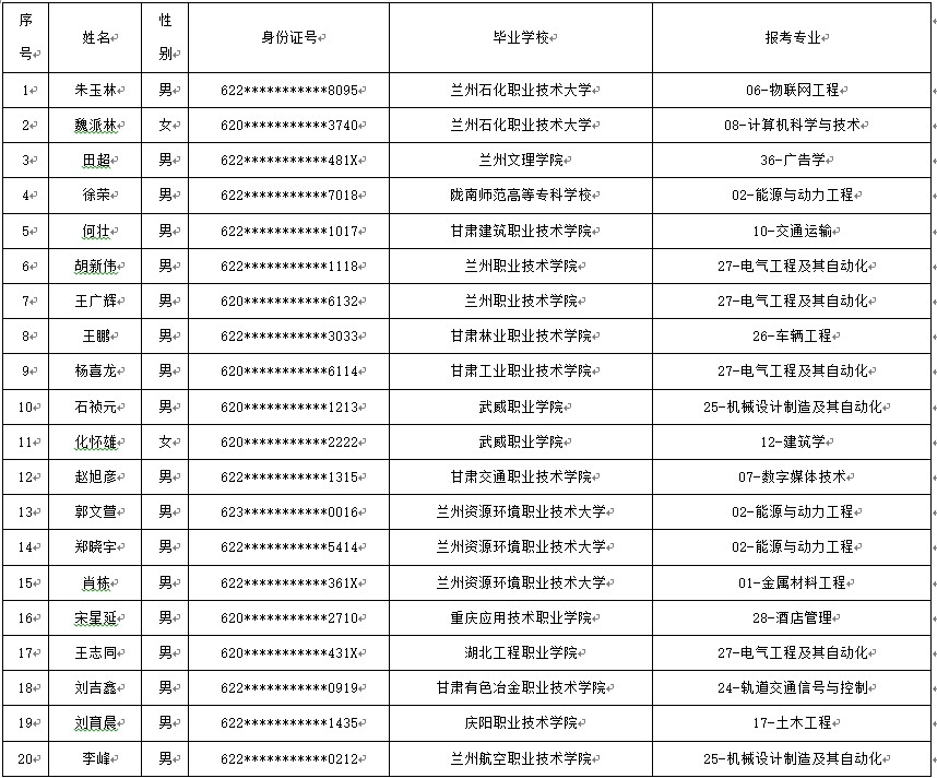 兰州博文科技学院免试(第二轮)入学拟录取名单