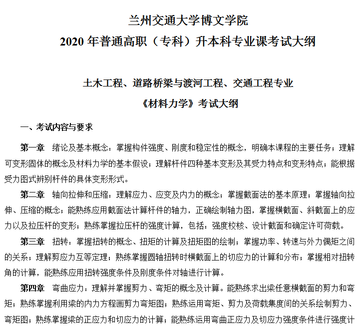 兰州交通大学博文学院 2020年普通高职(专科)第二次升本科专业课考试大纲