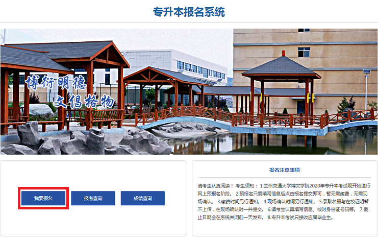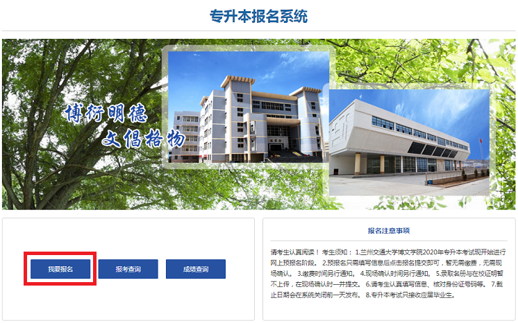 兰州交通大学博文学院专升本网上预报名系统已开通,各位考生从即日起可随时登录兰州交通大学博文学院官网,进入专升本预报名系统,进行预报名。